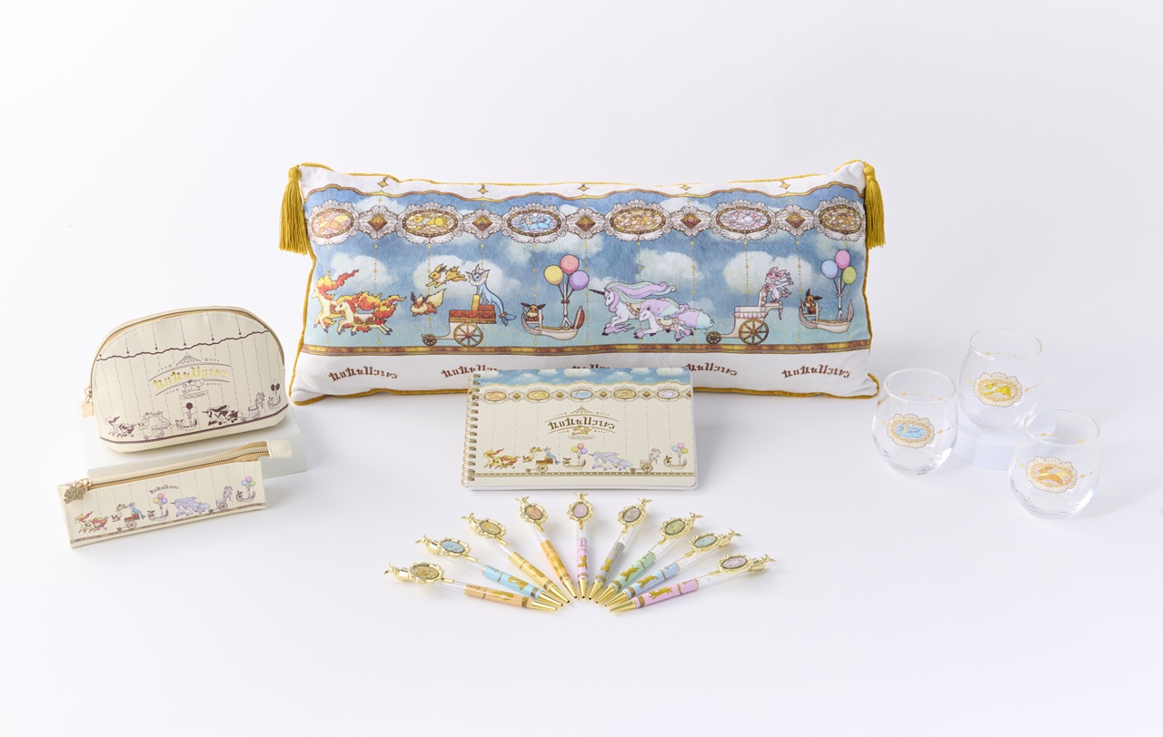 「ブイブイヴォヤージュ」のクラシカルな世界観をアートにしたグッズです。 ポニータ・ギャロップ・イーブイたちが巡る、賑やかな旅の一場面が描かれています。